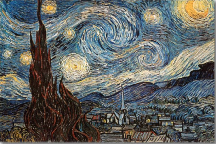 PART 1: Show your students a print of Vincent Van Gogh's painting “Starry Night”. [Another option for elicitation is to show the interactive animation of this painting by Petros Vrellis http://vimeo.com/36466564 ]