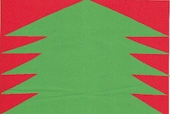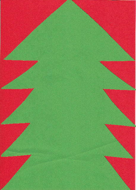 You will need poster paper (cançon or couché construction paper 0,48X0,60) for the background. For a better effect, it should be dark brown or black. You will also need silver or green construction paper (0,48X0,60), to cut out your Christmas Tree. (See A: small-scale Tree sample).